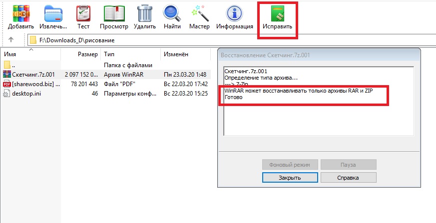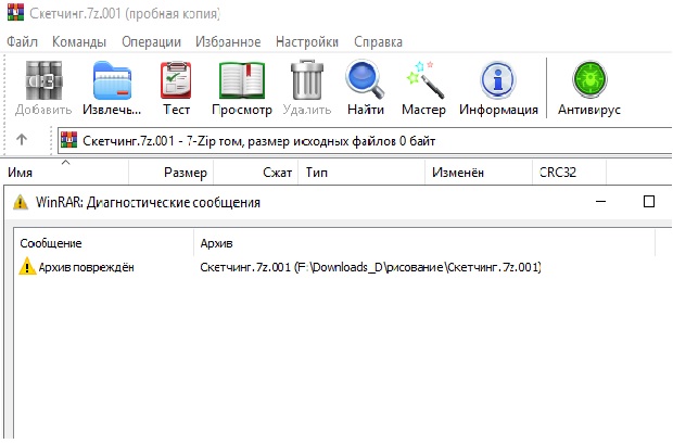 Здравствуйте, при открытии пишет архив поврежден. На данном скрине открытие архива с интенсивом по скетчингку. До этого скачивала архив с интенсивом по антомии. Там такая же ошибка. Исправить архив невозможно.