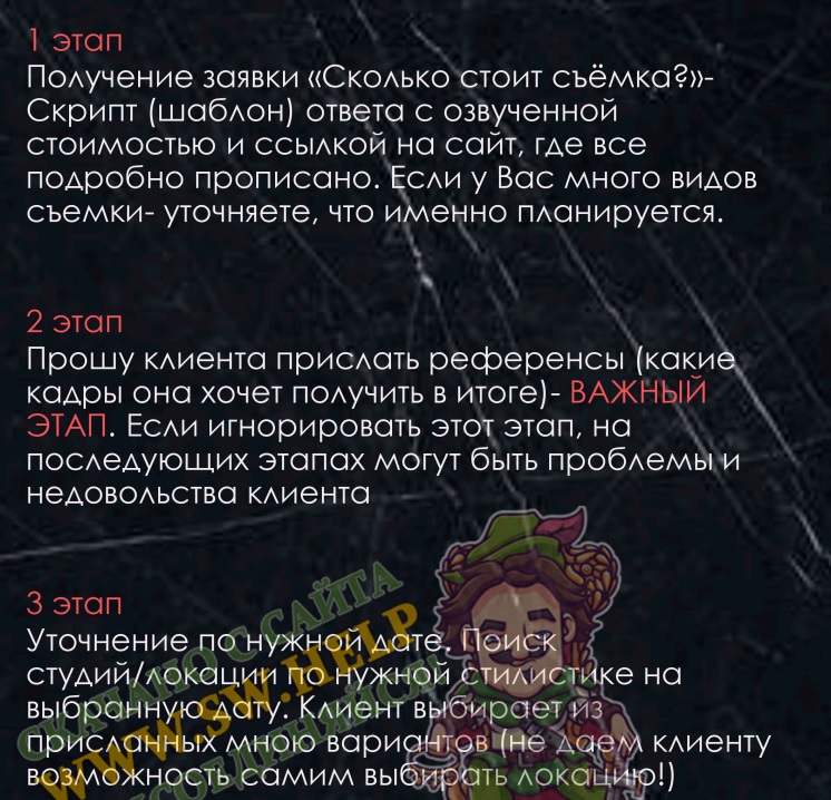 Помимо видео и ДЗ есть Чек-лист о подготовке, от первого сообщения к последнему. К сожалению все текста не указаны, только пишется, что "Скидываю скрпит первого сообщения"