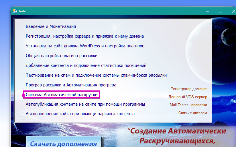 "Создание Автоматически Раскручивающихся, Самонаполняемых сайтов"