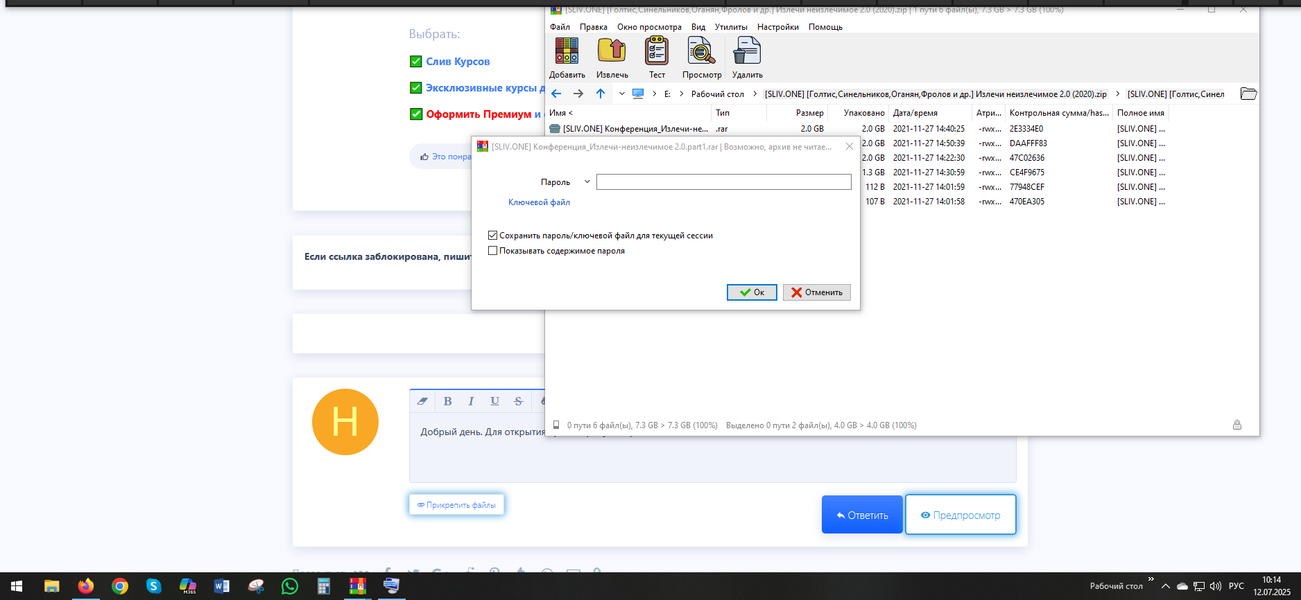Добрый день. Для открытия архива требует пароль. Помогите, пожалуйста
