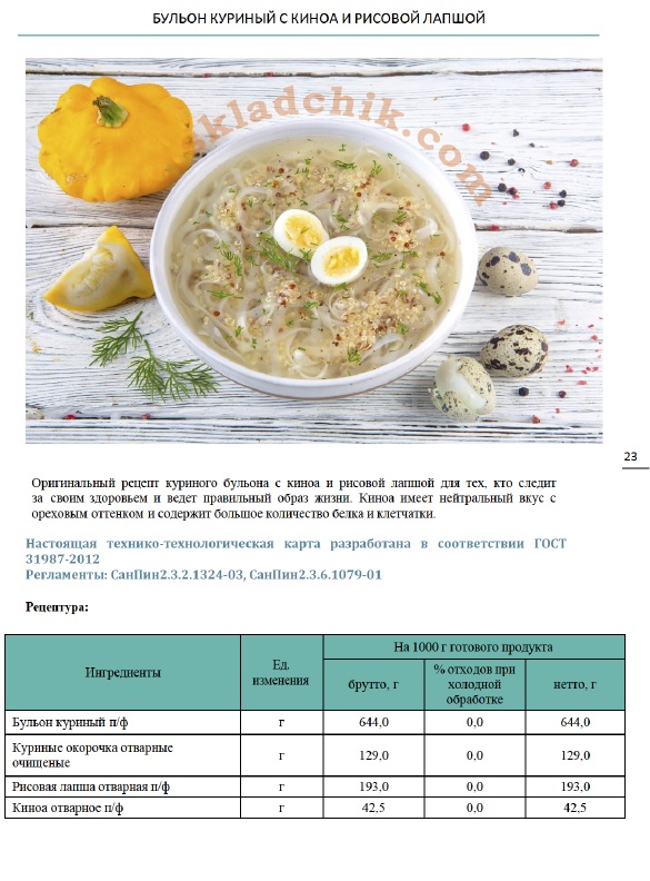 Самый последний идёт Куриный бульон с киноа и рисовой лапшой и это единственный "уникальный рецепт". Выложу сюда его скрин, что б не качать ради него сборник и заодно увидели скучное и некрасивое оформление. Не понимаю как в 2021 году автор остановилась именно на этих рецептах....