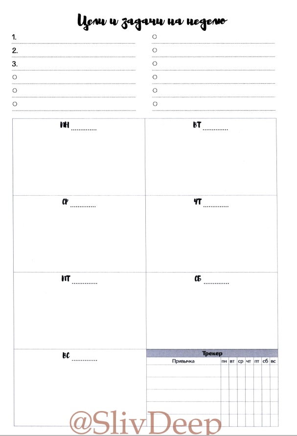 - Пишем цели и задачи. Есть на месяц, есть на неделю.