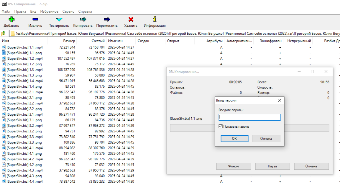 Здравствуйте... Пишет пароль при распаковке архива неверный...
