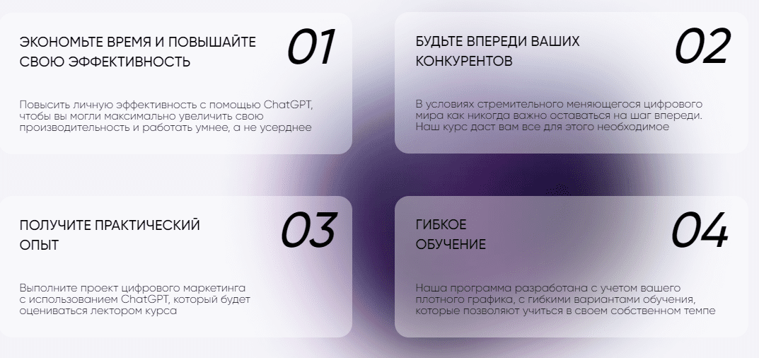 Курс для digital-специалистов, которые хотят прокачать свои навыки с помощью ChatGPT. Благодаря нему вы научитесь правильно брифовать клиента, создавать эффективные запросы в ChatGPT и сможете увеличить свою продуктивность в 10 раз.